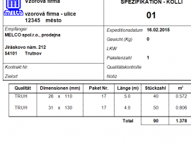 - Aktuální stav řeziva na skladě dle výrobků a dimenzí nebo dle paketů