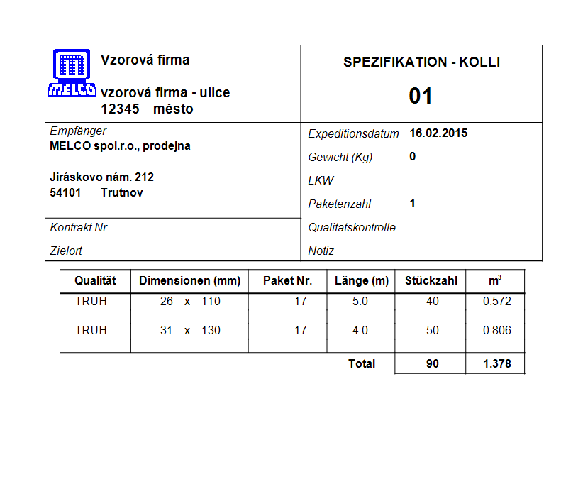 Výdejky, pořízené v programu Sklad řeziva lze dále využít k automatickému pořízení dodacího listu nebo prodejky za hotové v dalších agendách firmy MELCO.